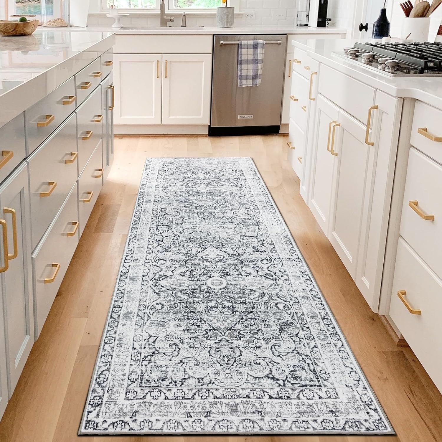 Washable Rug Runner, 2×6 Kitchen Runner Rug for Hallways, Non-Slip Thickened Carpet for Kitchen Entryway Laundry Bedroom Living Room Indoor (2’×6′, Light Gray)